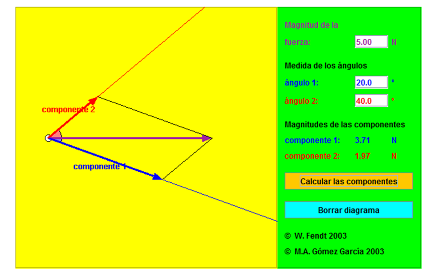 Simulación sobre suma y resta de vectores por el método de componentes